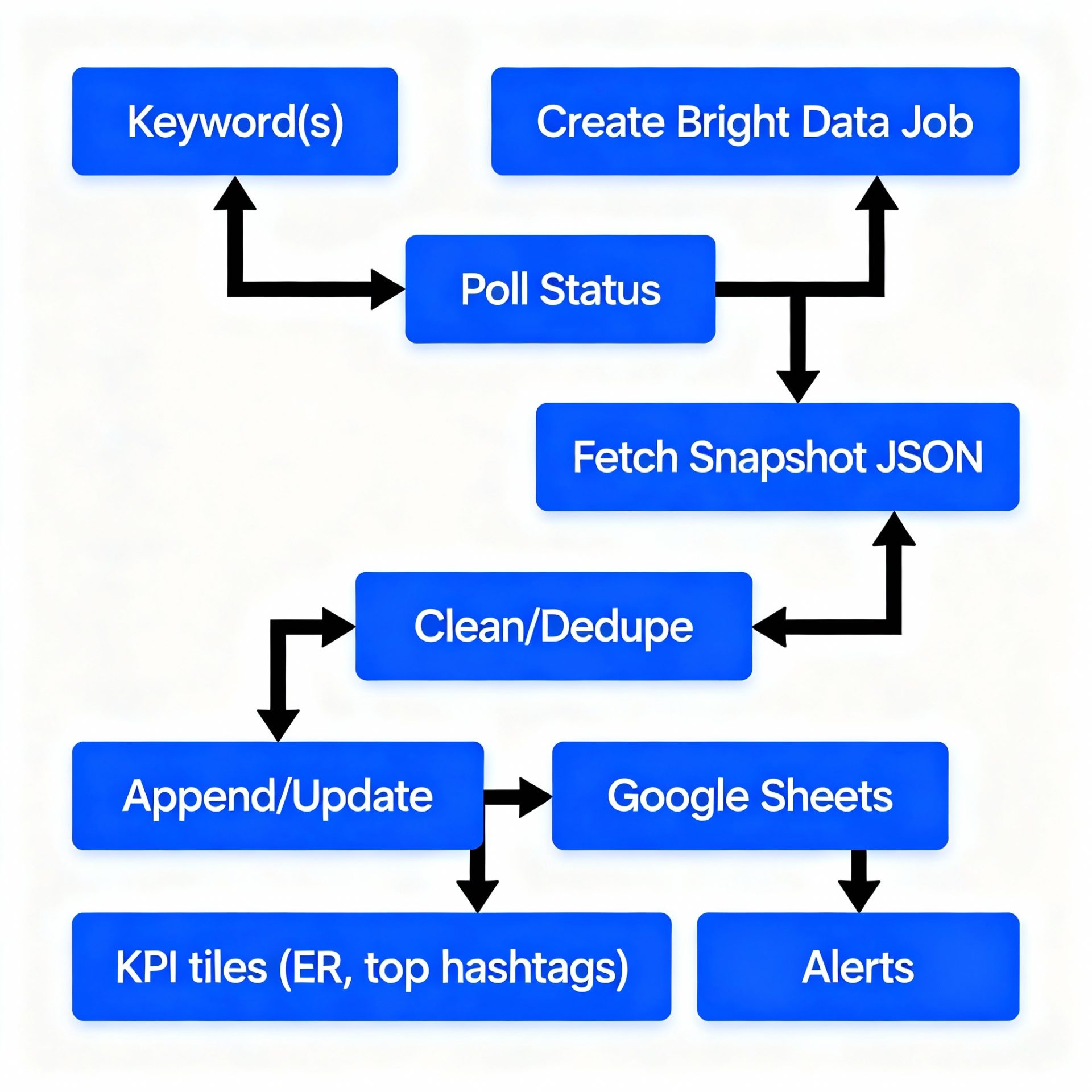 Workflow này sử dụng trí tuệ nhân tạo để tự động tạo và xuất bản nội dung trên các nền tảng mạng xã hội. Quá trình bao gồm việc phân tích xu hướng hiện tại, tạo nội dung phù hợp và đăng tải tự động, giúp doanh nghiệp duy trì sự hiện diện trực tuyến mà không cần đầu tư nhiều thời gian và công sức.