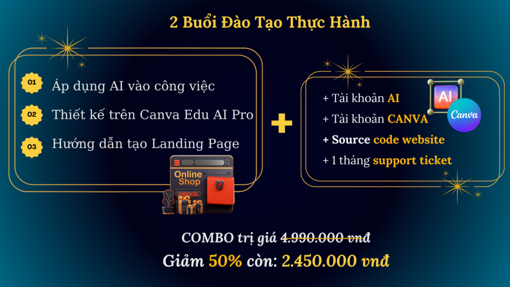 Không chỉ Training Online đào tạo, mà chúng tôi còn tặng luôn các tài khỏa A.I, Canva A.I và một Website cho bạn !!!