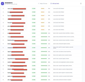 *90% – 98%: * Các email cực kỳ uy tín. AI đã xác nhận được tên miền doanh nghiệp, ngành nghề cụ thể.